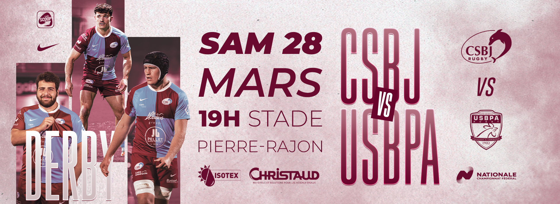 Club formateur reconnu, le CSBJ Rugby défend avec passion les couleurs ciel et grenat sur les terrains de France. À Bourgoin-Jallieu, le rugby est bien plus qu’un sport : c’est une tradition, une école de vie, un engagement collectif.